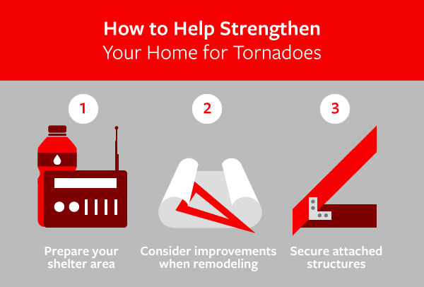 While no home can be completely tornado-proof, you can fortify your home to help make it more resistant to damage. Following are some things you can do to help make your home, and your family, safer if a tornado strikes.